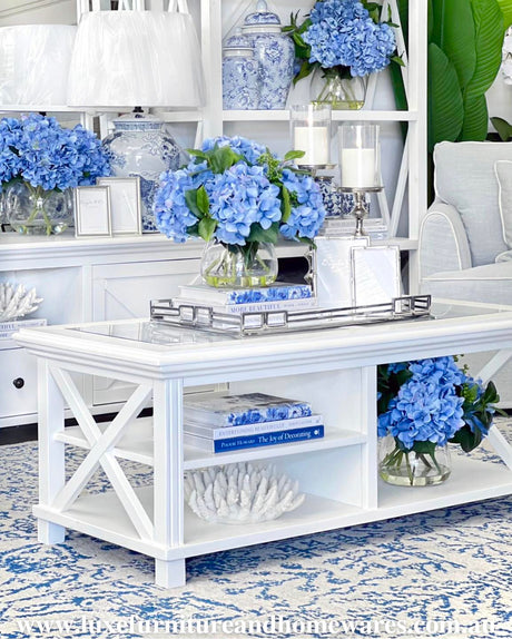 Ex-Display White Garden Hydrangea Mixed Arrangement In Glass Vase
