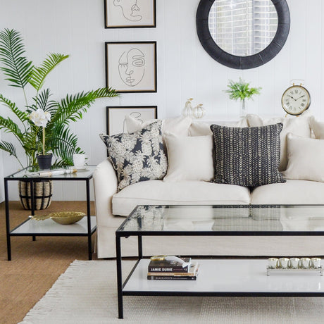 Sale price $199.00 Regular price $499.00Unit price /UnavailableVery low stock (1 unit)Ex-Display Silver and Glass Sofa Side Table