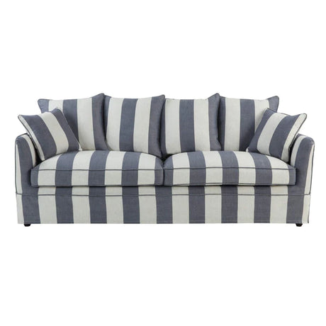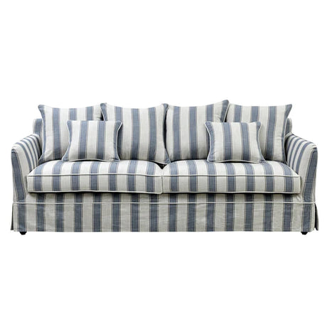 Regular price $1,899.00Unit price /UnavailableAvondale Three Seater Sofa In Denim Blue Stripe with Piping