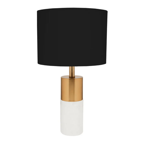 Marble and Brass Table Lamp with Black Linen Shade