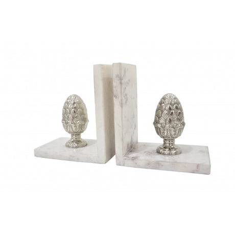 Pair Of Antique Silver Acorn & Marble Book Ends