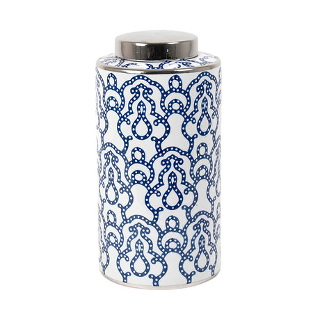 Regular price $169.00Unit price /UnavailableVery low stock (1 unit)Blue & White Porcelain Jar With Silver Lid - Large