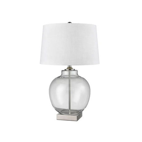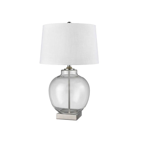 Round Glass and Antique Brass Lamp with White Linen Shade