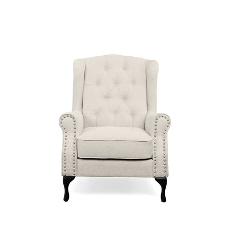 Royal Beige Linen Chesterfield Wing Back Armchair