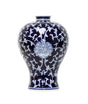 A beautiful ceramic dark blue and white vase with an elegant lotus pattern. Ideal for Hamptons decor.