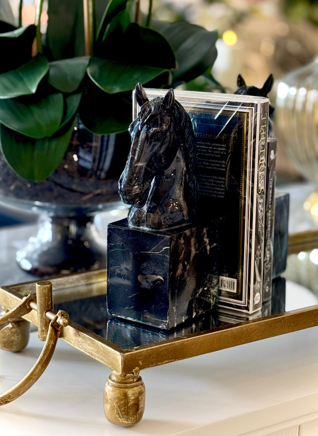 Whether anchoring your favourite novels or standing alone as statement décor, the Black Obsidian Horse Heads lend an air of equestrian luxury to any space. Perfect for modern, Art Deco, or classic interiors. Price is for a pair.