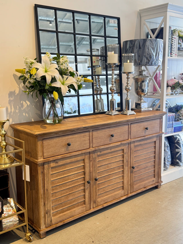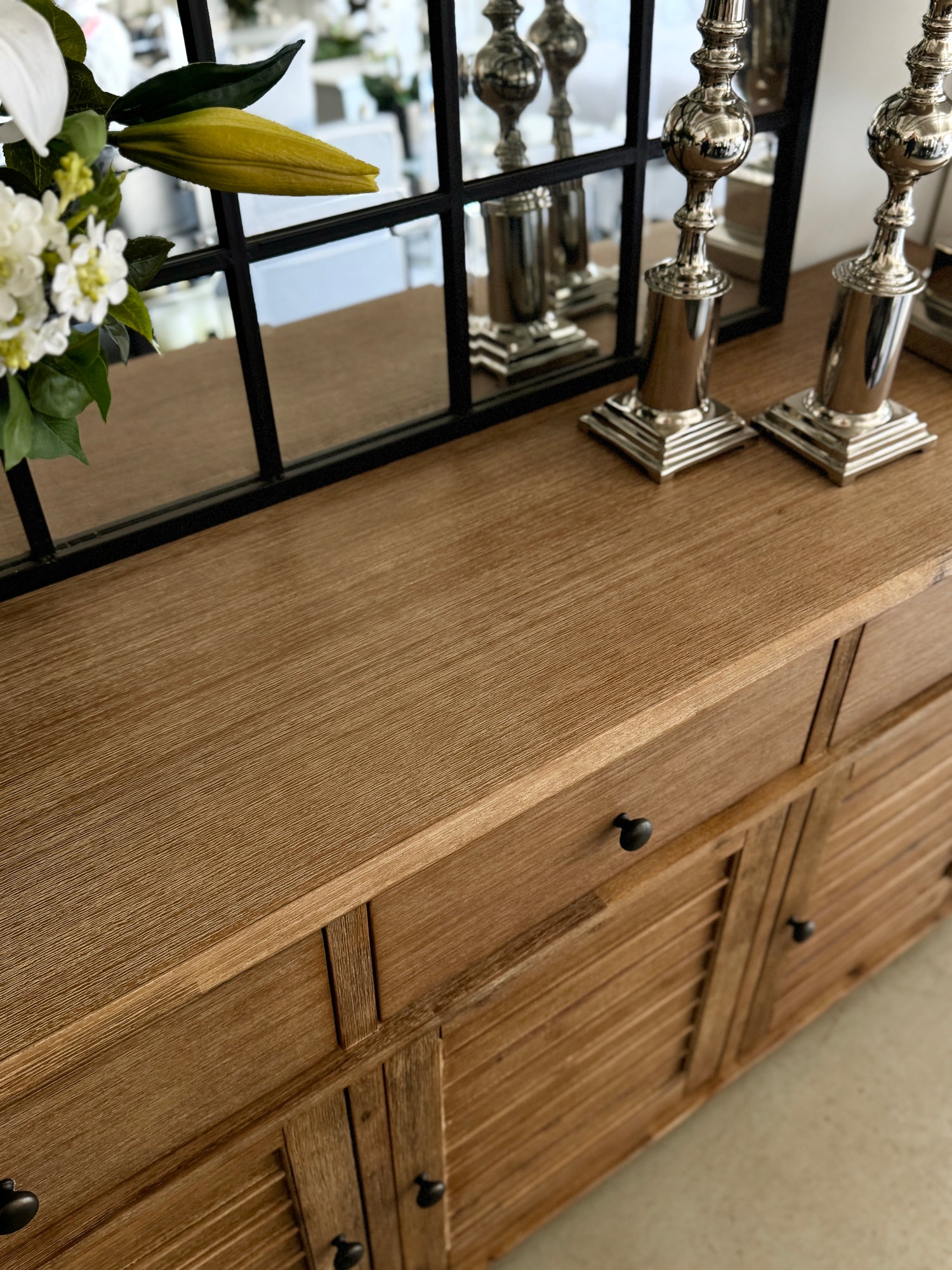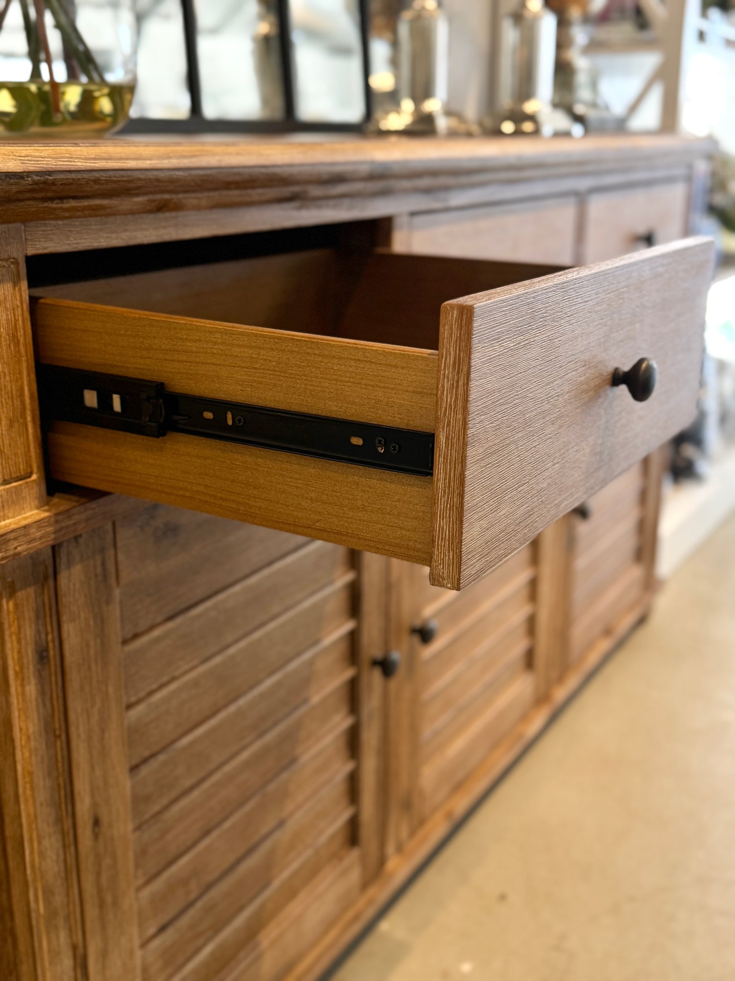 Exhibit streamlined grace with this beautifully crafted buffet, inspired by timeless plantation style. Made from solid acacia wood, it showcases the natural richness and grain of the timber, enhanced by warm, hand-finished detailing.