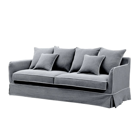 Ex Display Avondale Three Seater Sofa In Grey with White Piping