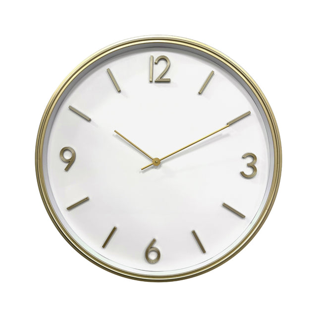 Add a touch of modern sophistication to your space with this striking Large Gold Wall Clock. Featuring a clean white face and sleek gold frame, this eye-catching timepiece combines timeless elegance with contemporary design.