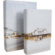 Tuck away clutter in style with this set of 2 coastal-inspired book boxes, designed to bring a relaxed, beachy vibe to your home. Featuring a canvas-wrapped finish with ocean-toned hues and nautical detailing, these clever storage boxes look like decorative books but open to reveal hidden compartments, perfect for storing remotes, keys, chargers or keepsakes.
