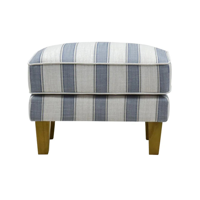 Complete the look of your Newport collection with the stunning Newport ottoman in sky blue stripe. The perfect match for your Newport Armchair (listed separately) featuring beautiful wooden tapered legs, it's classic design is the ideal piece for resting tired feet or as an extra seating option.