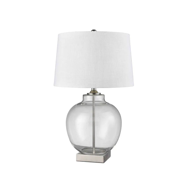 Add a chic and refined touch to any room with our elegant Round Glass and Nickel Lamp. Featuring a beautifully rounded clear glass base, complemented by sleek nickel finished accents, this lamp effortlessly blends classic style with modern sophistication.