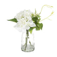 Bring the timeless elegance of fresh blooms into your home with this faux white hydrangea arrangement. Featuring beautifully detailed white hydrangea blossoms and lush green leaves, arranged to perfection in a clear glass vase with realistic faux water for a natural, fresh-cut look.