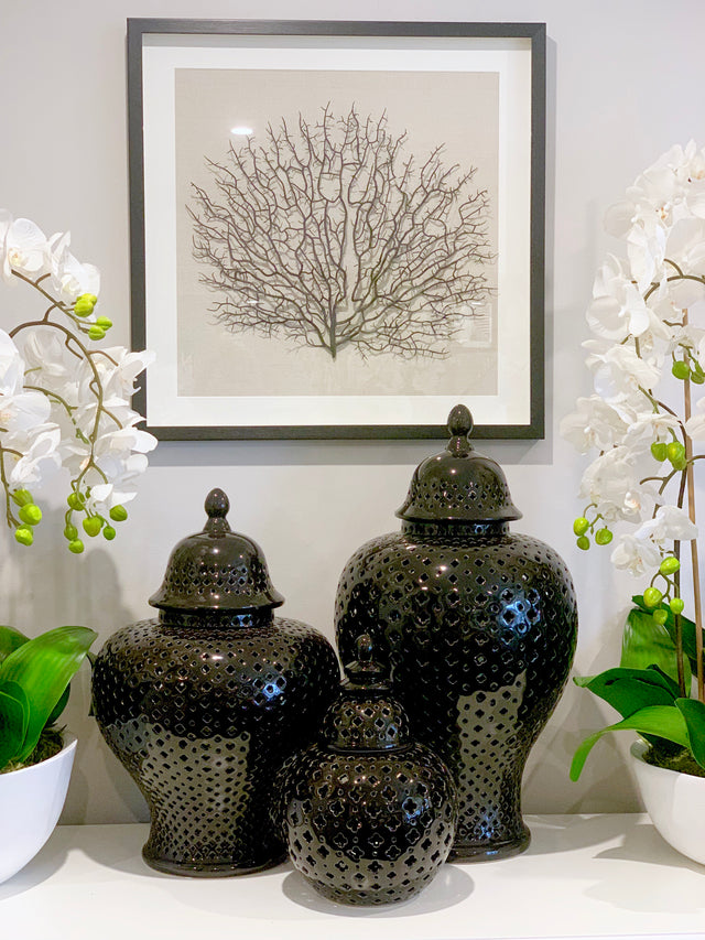 Create a coastal Hamptons style in your home with this beautiful large faux sea fan mounted on a linen backing, in a white frame.
