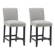 Elevate your kitchen or dining area with our stunning set of two Maya Kitchen Stools. Featuring a soft grey fabric seat and backrest for superior comfort, paired with the sleek black wooden legs, these stools will offer both elegance and practicality to your home. Their sturdy construction ensures they will offer durability for your families daily use while still looking stylish. Price is for a set of two (2) stools.