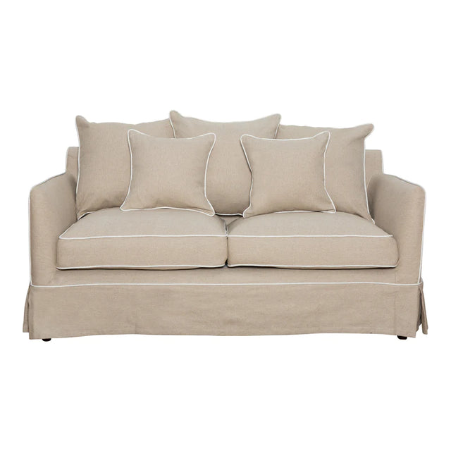 A stylish two seater Hamptons style sofa featuring a beautiful piping detail. With a removable slip cover, this timeless design is sure to make a statement in your home!