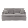 A stunning 2.5 seater sofa upholstered in beautiful pale grey cotton linen with two matching pillows and piping detail. Featuring a removable slip cover, the timeless design will compliment all styles of décor beautifully.