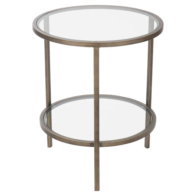 Featuring a stunning modern, contemporary design with antique brass frame, with a glass top and a glass base shelf for added storage. Suited to all styles of decor including Hamptons, coastal, classic and French.