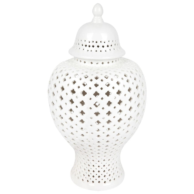Beautifully handcrafted with a quatrefoil design, our high-fired porcelain temple jars are a versatile décor piece and a must have for any home!