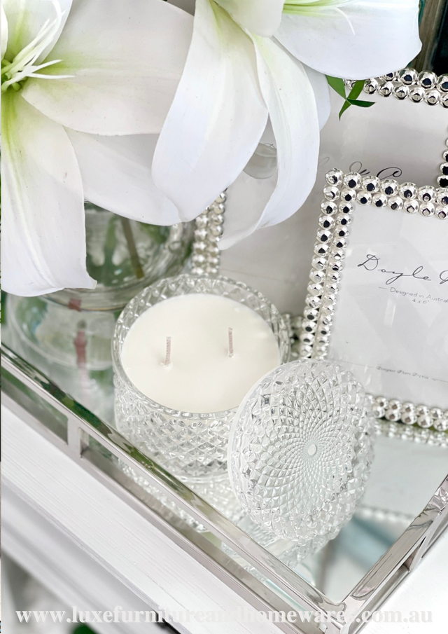 Indulge your senses with the exquisite aromas of this beautiful hand poured, deliciously scented 100% pure natural soy wax candle by Aromatic Indulgence! Featuring cotton wicks and a beautiful crystal cut glass vessel with lid, these candles make the perfect accessory for your home.