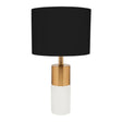 Topped with a bold black linen drum shade, this lamp softly diffuses light, creating a warm and inviting atmosphere. Its minimalist silhouette and timeless palette make it an ideal addition to both modern and classic interiors.