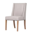 Spice up your dining experience with our Marielle Beige Dining Chair. Upholstered in timeless beige fabric and adorned with chic stud detailing, these chairs add a touch of sophistication to any table setting. With their sleek timber legs they will add timeless sophistication to your dining space.