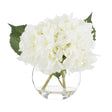 A beautiful white faux hydrangea floral mix set in a clear glass vase. Ideal for Hamptons, classic, coastal & French decor styles.
