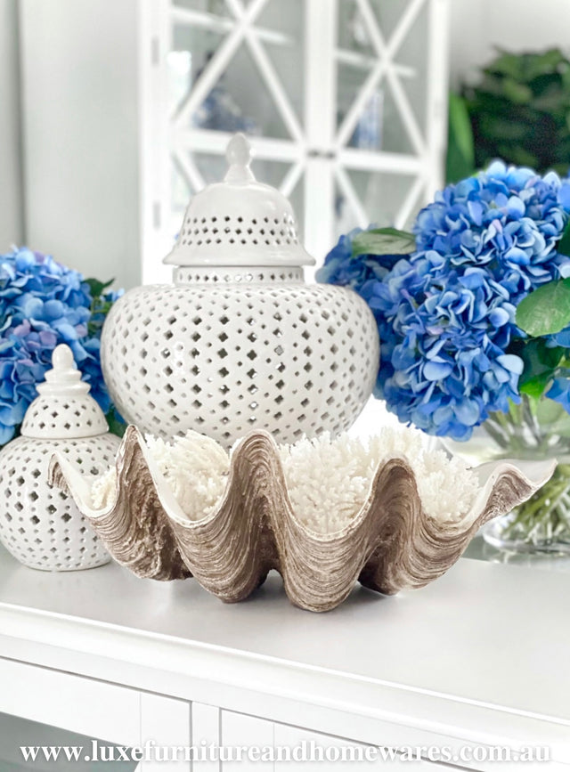 Large Faux Clam in natural is pictured (sold separately) with approximately 1.5kg.