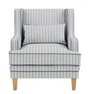 Add style to your home with the stunning Newport armchair in blue and white pinstripe. Featuring beautiful sculpted arms, cushioned backing, generous seat depth and mid tone timber legs this piece will add sophistication to your home!.