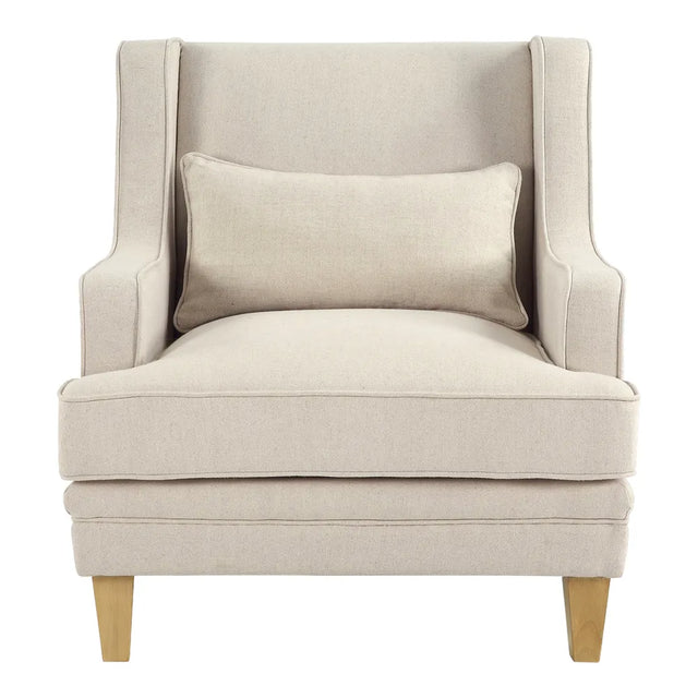 Add style to your home with the Newport armchair in beige with white piping. Featuring beautiful sculpted arms, cushioned backing, generous seat depth and mid tone timber legs. Matching lounge suite also available, listed separately.