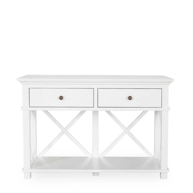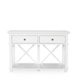The Newport Console Table features a stunning cross back design, two drawers and a base shelf for added storage. Suited to all styles of decor including Hamptons, coastal, classic and French, this beautiful piece will surely make a statement in your home.