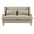 Add style to your home with the Newport two seater sofa in Natural with white piping. Featuring beautiful sculpted arms, cushioned backing, generous seat depth and mid tone timber legs.