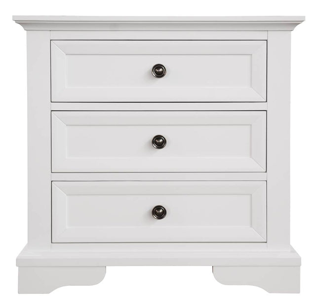 Make a statement in your home with this beautiful three drawer bedside table. Featuring metal extension runners with black felt lining. Suited to all styles of décor including Hamptons, Coastal, Classic and French. Price is for one bedside table.