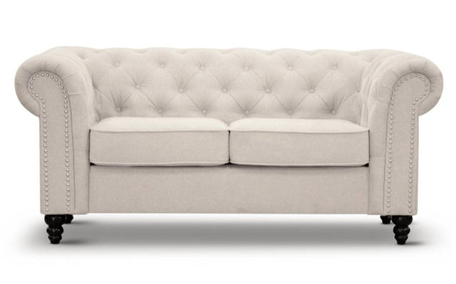 Royal Beige Linen Two Seater Chesterfield Sofa With Silver Studs is available to pre-order now! Item ships as soon as it arrives in stock.