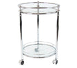 Impress your guests and add glamour to your home with this luxurious silver chrome and clear tempered glass bar cart on castors.